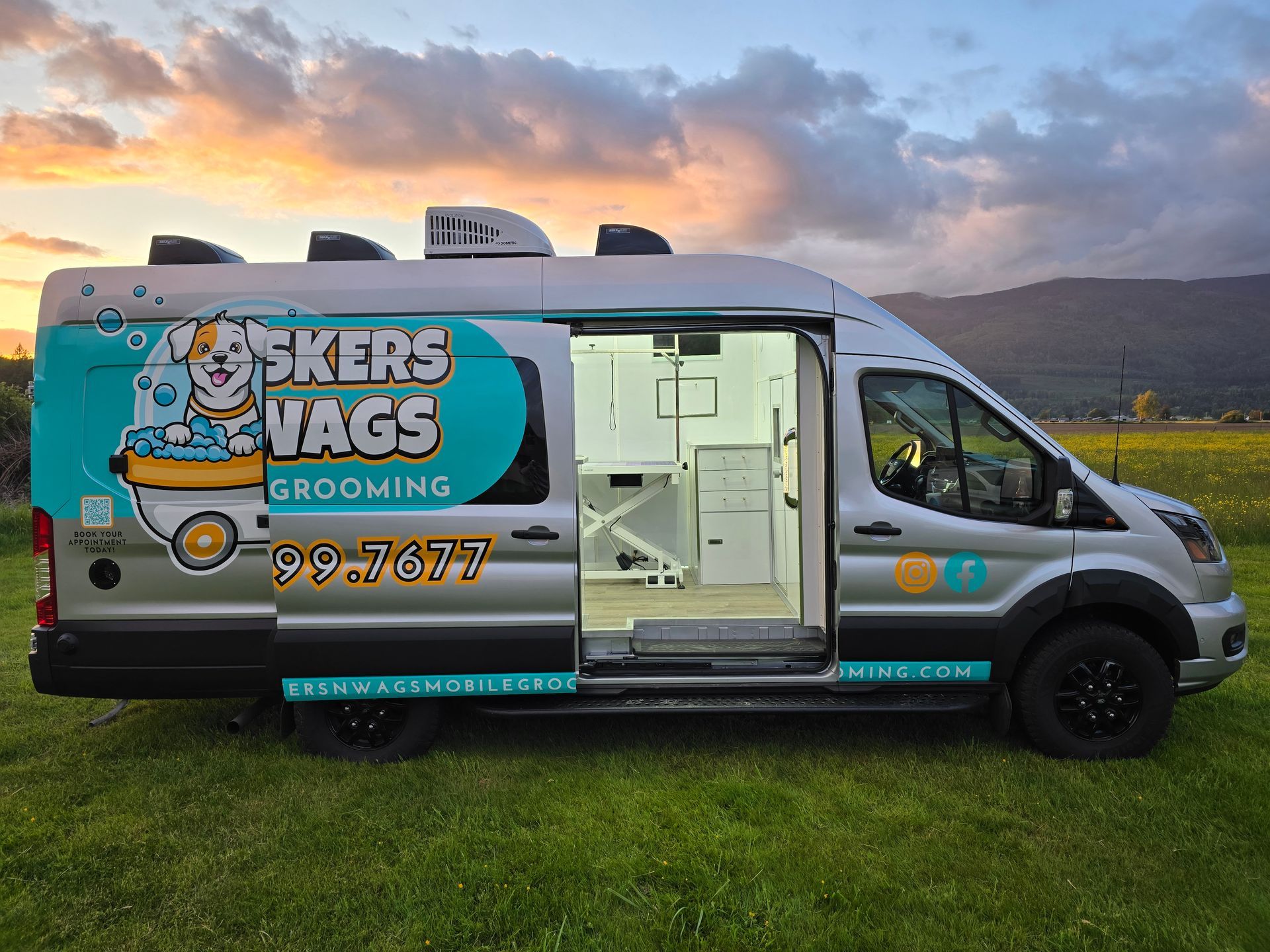 Here at Whiskers N Wags we offer a stress free grooming environment for your furry friends in our mobile salon that comes right to your front door.